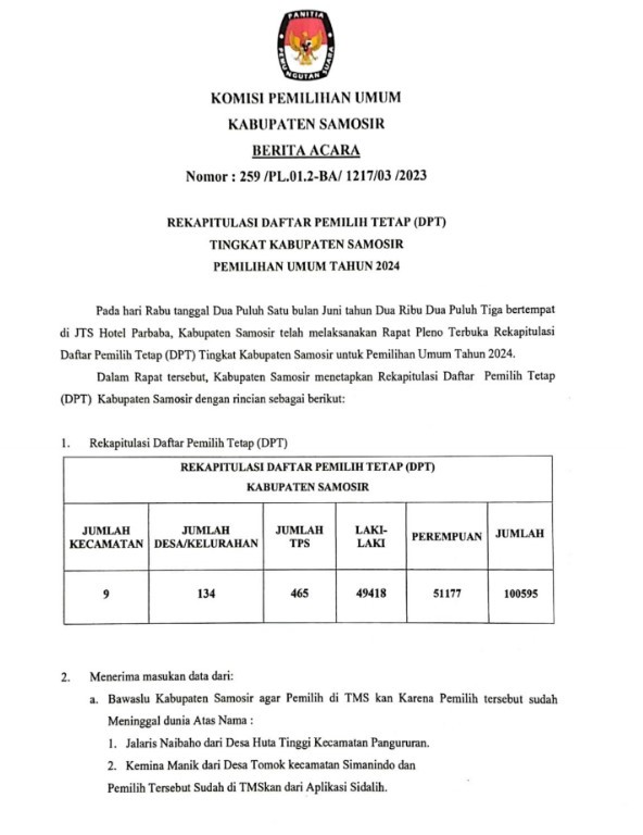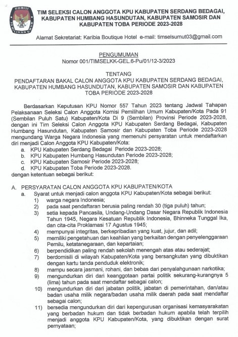 Pendaftaran Bakal Calon Anggota KPU Kabupaten Serdang Bedagai, Kabupaten Humbang Hasundutan, Kabupaten Samosir dan Kabupaten Toba